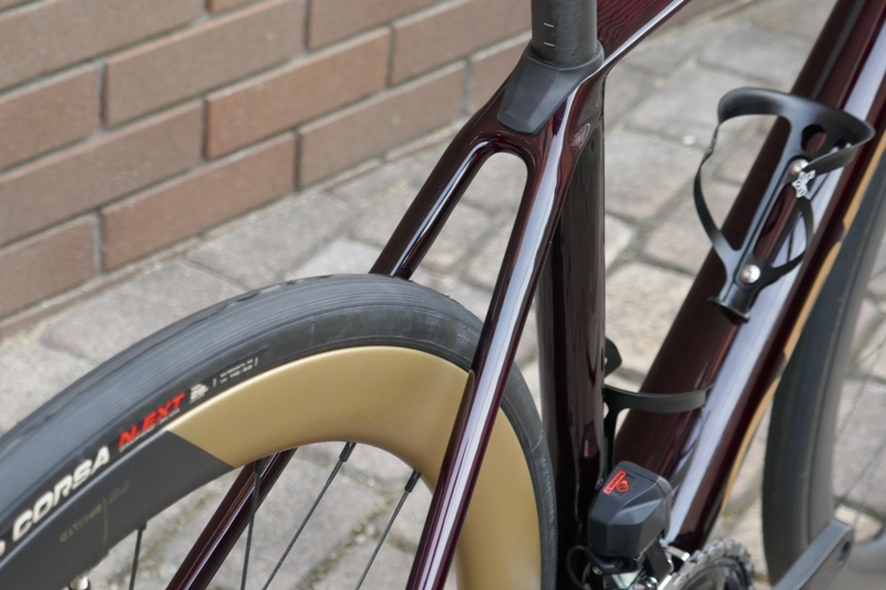 コラムカット、ブレーキホースルーティング変更、ホイール調整などかなりお時間かかりましたが無事に仕上げ、サイコンマウントやボトルケージを取り付けて完了。