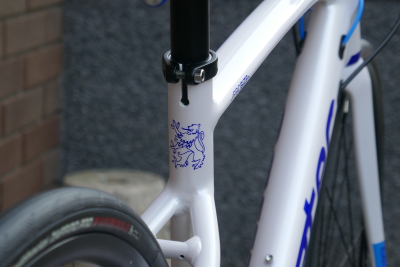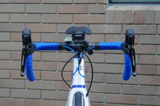 ステム、ハンドル、クランク長を最適なサイズにさせて頂き、バーテープとシフトアウターをブルーに。