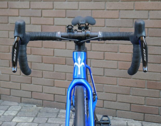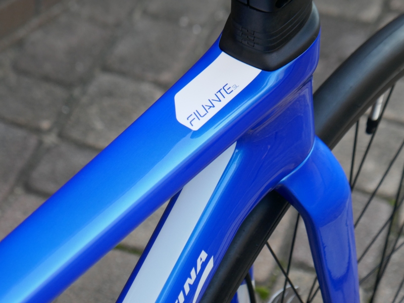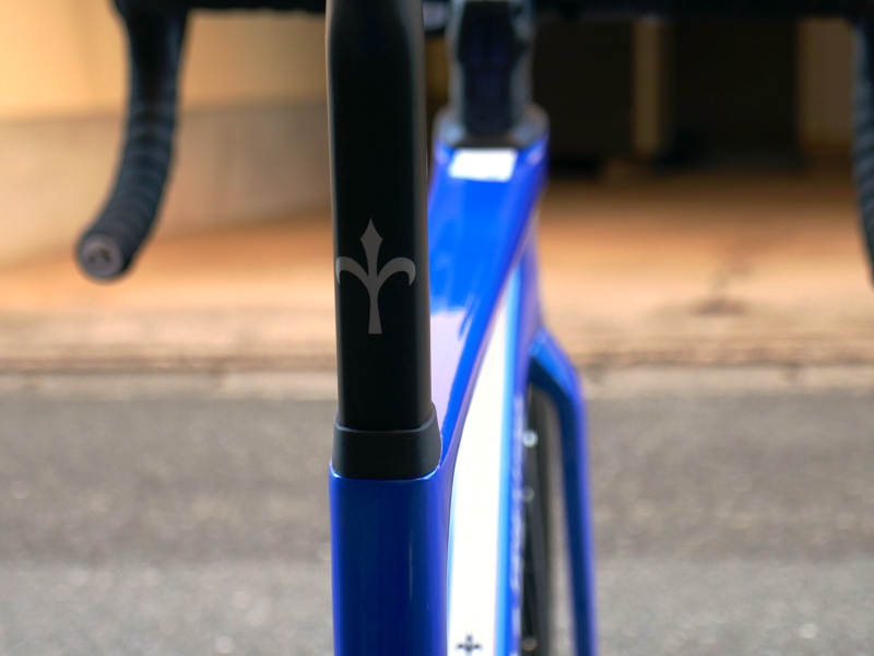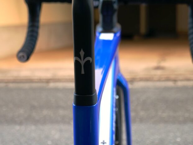 グロスブルーにダウンチューブのホワイトロゴが映える、とても素敵なカラーリング。