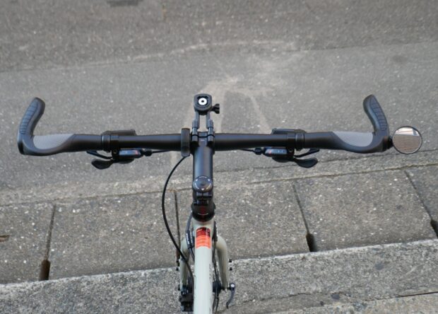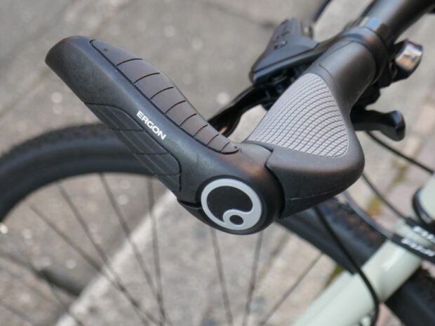 ゆったりサイクリングにはもってこいの、ショートバーエンド付きのエルゴグリップ。