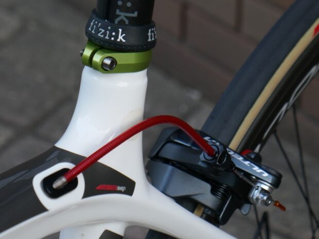 ブレーキアウターカラーはクリアレッド、インナーエンドキャップはオレンジに。